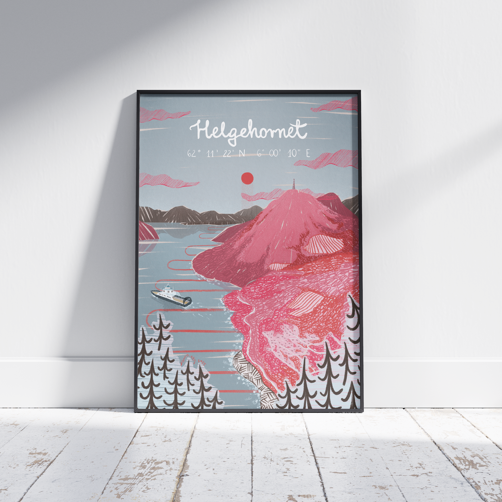 Helgehornet can become part of your home-as a framed poster that will remind you of a unique hiking adventure, or simply of Norway. Perfect for lovers of fjords, winter, and… ferries.